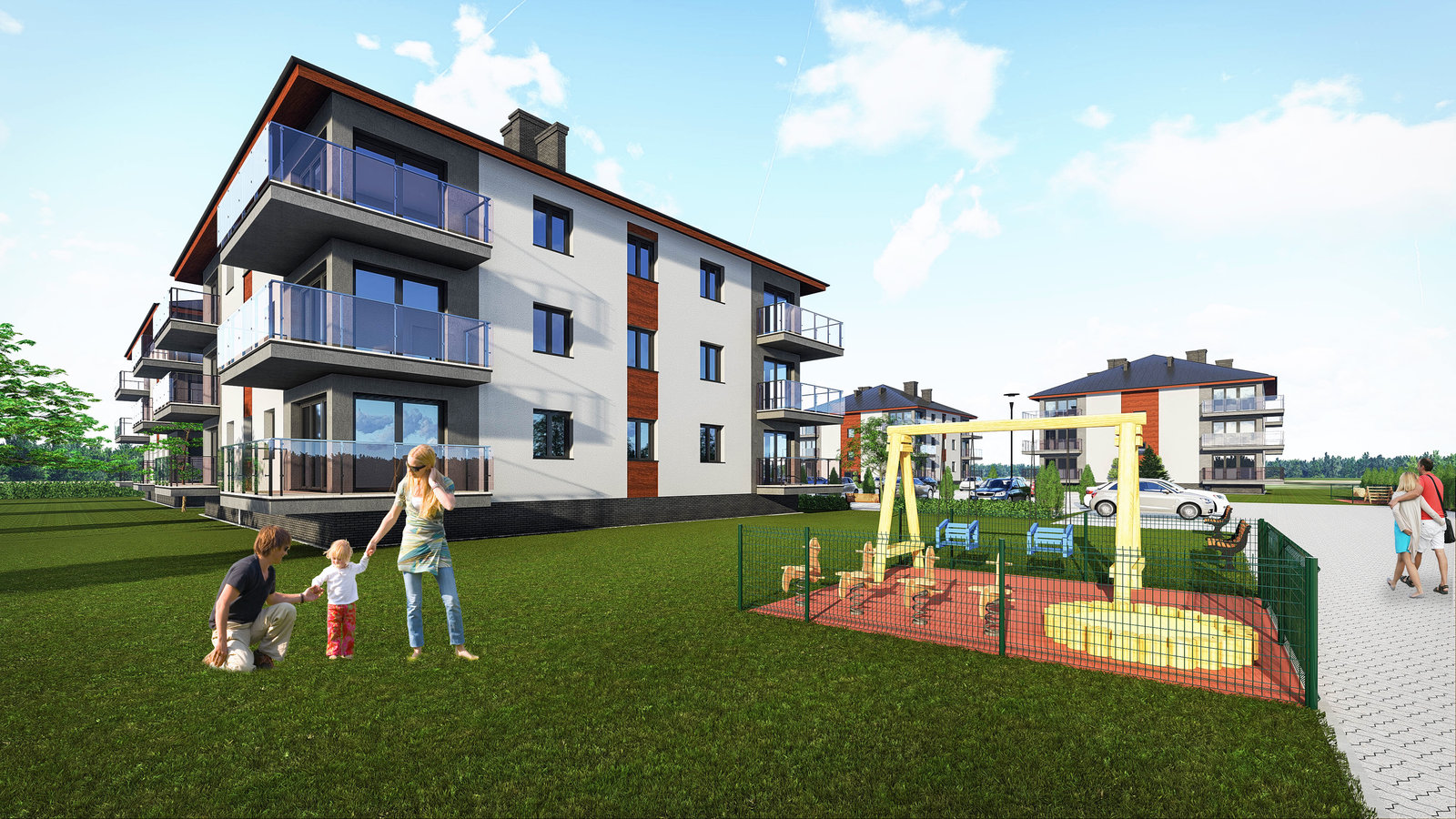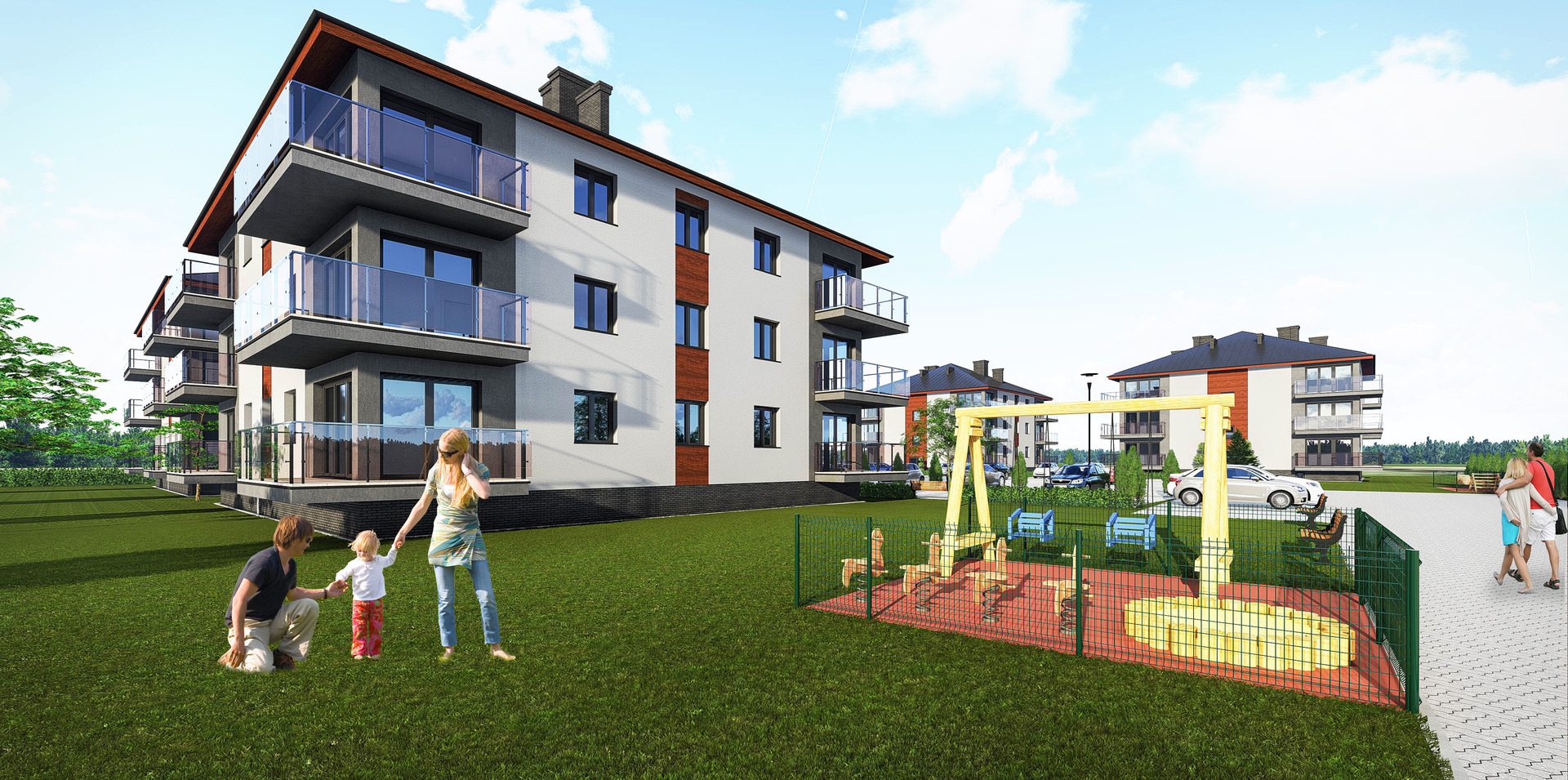 W trakcie planowania osiedla zadbaliśmy o odpowiednią ilość odprężającej zieleni w pobliżu. Dodatkowo dla naszych najmłodszych na terenie osiedla zostanie zrealizowany kolorowy plac zabaw.
