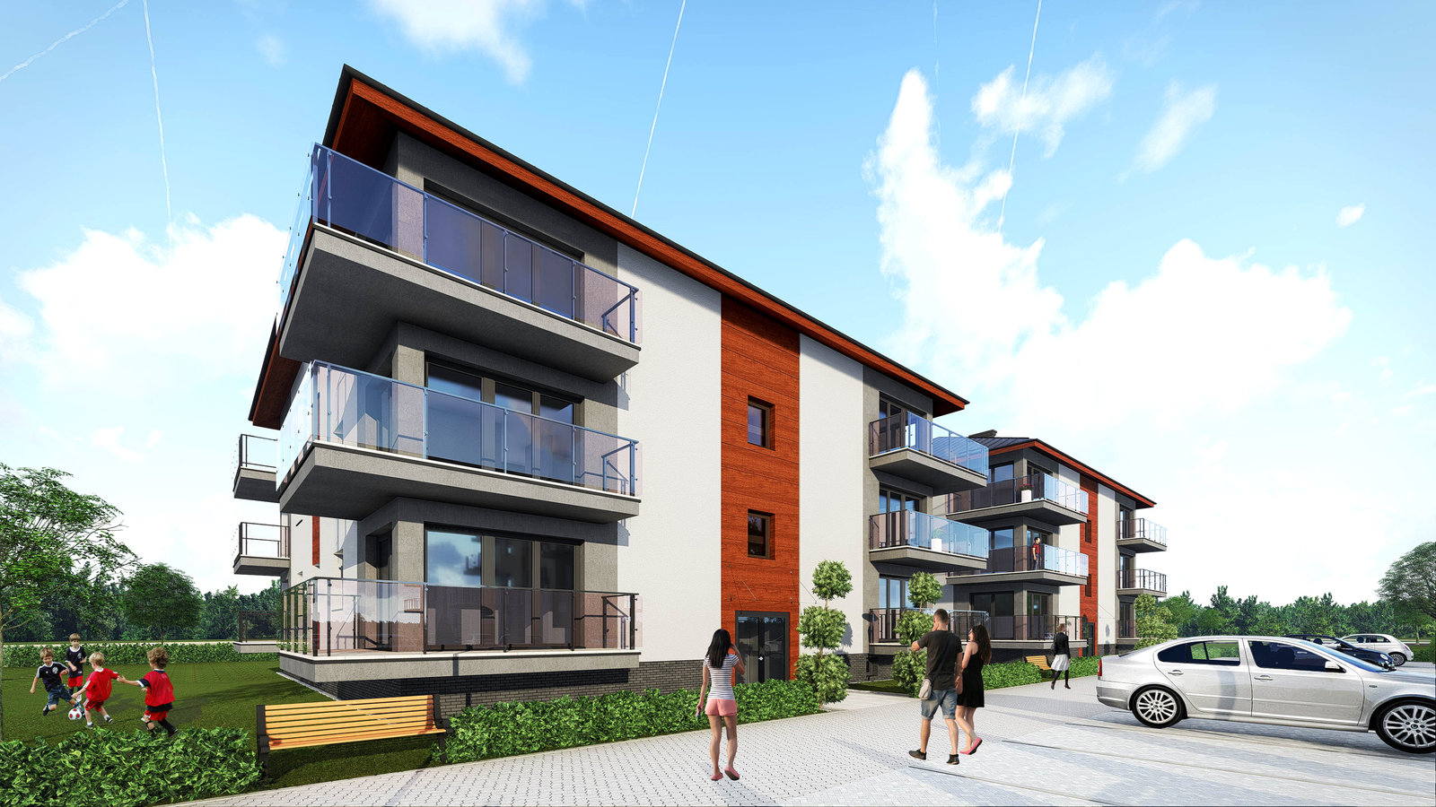 Osiedle Bajkowe to nowa inwestycja, składająca się z 4 budynków mieszkalnych z metrażem od 49m2 do 59m2, realizowana w Śmiglu. W wykonywanym obecnie, I etapie dostępne będą 24 mieszkania.